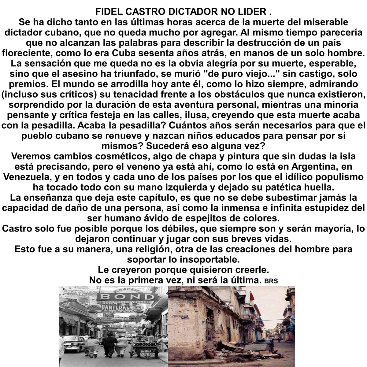 MasalladeltiemposaidAnte la polémica por el artículo que escribió sobre la muerte de Fidel Castro, el Padre Fortea responde a las críticas. Elegía a Fidel Castro (II parte): cuando el Destino nos alcance O dicho de otra manera, a la inversa, el camino del Bien y la virtud conduciría al infierno exactamente lo mismo que el camino del Mal y del vicio. No sé, pero tengo la sospecha de que la Biblia no dice exactamente eso, ni algo parecido, ni algo que lejanamente suene a eso. Si no recuerdo mal, ¿Jesús no nos habló de dos caminos, uno de los cuales llevaba a la salvación y el otro a la condenación? Si todo da lo mismo, como pretenden algunos, prefiero llegar al Cielo por el camino más cómodo posible. Pero no, no es así. Las cosas no son así, porque Dios no es así. Yo creo en el Dios de la Biblia, no en el Dios del buenismo. A los buenistas les da lo mismo todo, porque a su dios le da lo mismo todo. Sin embargo, os aseguro que al Dios de Abraham, de Isaac y de Jacob NO le da lo mismo todo. Cada acción tiene sus consecuencias. Y hay acciones que tienen consecuencias eternas. Hay acciones que matan el alma. Hay actos que llevan al infierno. Jamás he afirmado que Fidel Castro esté en el infierno. Ni lo he dicho ni lo he escrito ni lo pienso. Sólo digo que Fidel Castro, después de toda una vida repleta de acciones gravísimas, acciones que llevan a la condenación eterna, sin que nos conste su arrepentimiento en ningún momento de su larga vejez, ha afrontado el juicio inapelable y riguroso de Dios. Sólo he dicho eso y nada más que eso. Nada sé del juicio divino acerca de esa alma en concreto. Pero del juicio en general sé lo que nos ha dicho Dios: porque el juicio será sin misericordia para el que no ha mostrado misericordia (Santiago 2, 13). ¿Dónde está Fidel Castro ahora? Os lo voy a decir, porque os aseguro que lo sé: o está en el lugar donde hará penitencia y no saldrá hasta pagar incluso la última pequeña moneda (Lucas 12, 59), o está en el lugar donde ya no tiene que hacer ninguna penitencia, porque la sangre de Cristo no fue derramada por él y su nombre no se encontró en el Libro de la Vida.