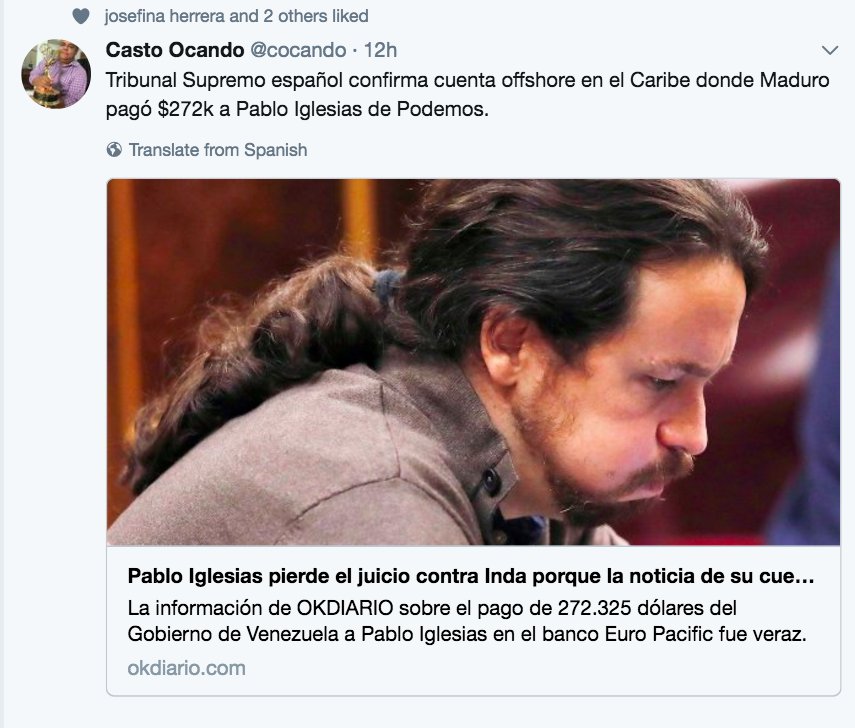 Paco 57.saidCon los venezolanos muriendo de hambre Maduro pagó U$S 272.000 al partido Podemos de España para que defienda a su gobierno.